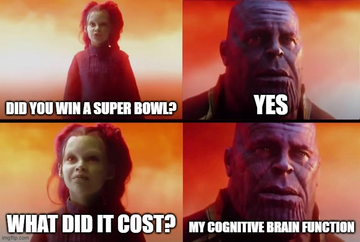 P.s, pity poor Matthew Stafford. He finally gets out of Detroit, wins a Super Bowl, then suffers enough brain damage to become a resident of Detroit. RIP.